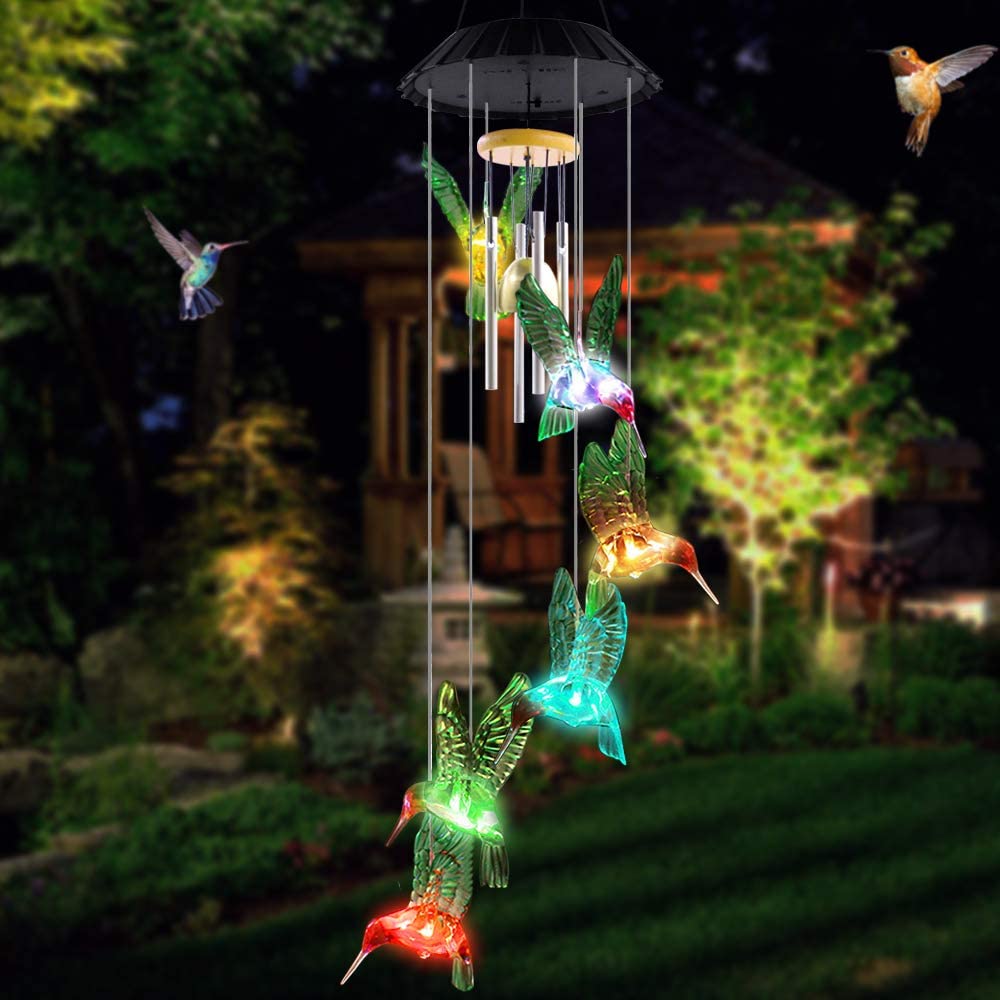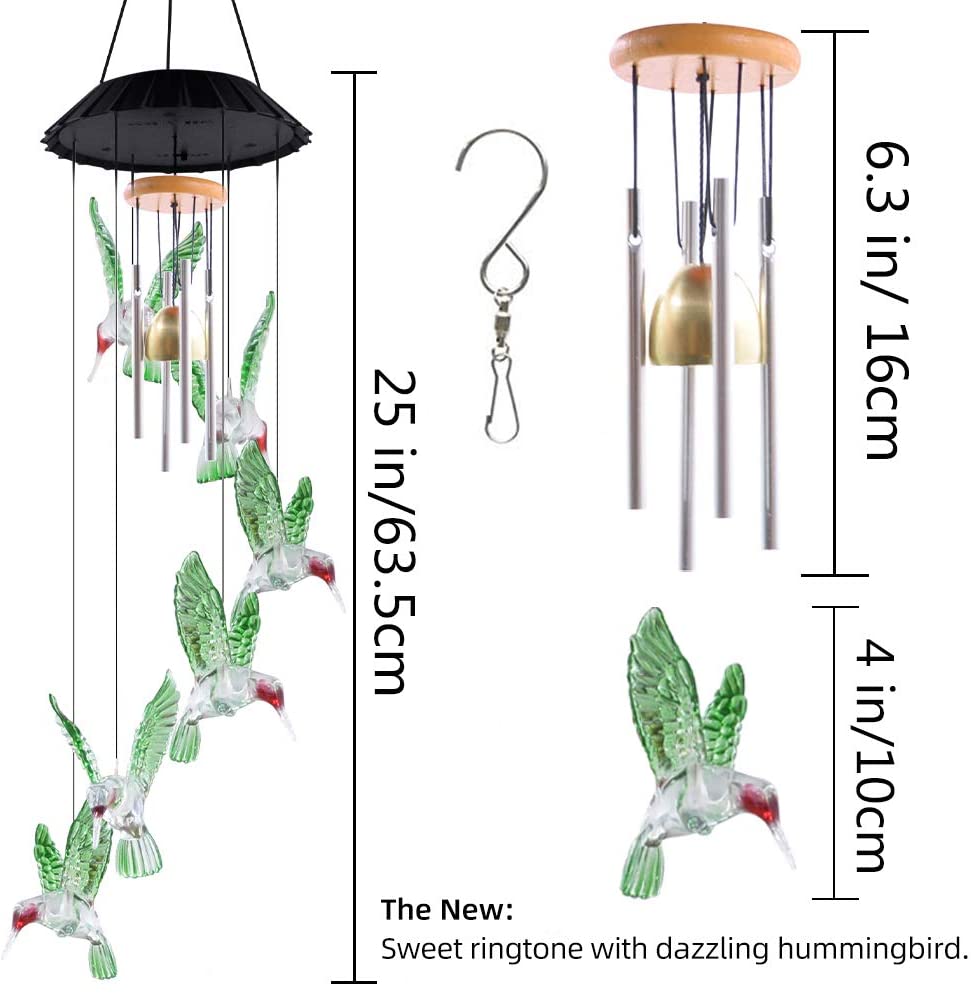 【COLOR CHANGING LED LIGHTS】 Our color changing wind chimes puts on a spectacular light show when day turns to night. Featuring 6 light up hummingbirds, the outdoor solar wind chime is colorful, chirpy & oh-so bright!